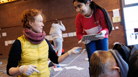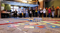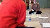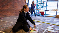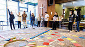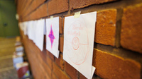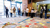 "Nun ging es in die demokratische Abstimmung, wie das Gesamtwerk aussehen sollte. Welche Fliese passt neben welche? Welche Fliesen passen gar nicht zueinander? Können Muster, die aus mehreren Fliesen bestehen, auseinandergenommen werden, um an unterschiedlichen Stellen in der Installation ausgelegt zu werden? Ergeben unsere Fliesen ein Muster oder mehrere? Ein gar nicht so leichter Prozess, für den wir uns fast zwei Stunden Zeit ließen. Es wurde so lange umgelegt und diskutiert, bis wir mehrheitlich mit dem Ergebnis zufrieden waren."