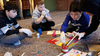Während der Projektarbeit wurde je nach Bedarf deutsch, englisch, russisch oder ukrainisch gesprochen. Für Außenstehende faszinierend zu beobachten. Für die Lehrkräfte Teil ihrer täglichen Arbeit: Im Zentrum stehen Teilhabe und Miteinander.