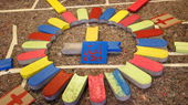 Bildende Kunst, LandArt, das Wissen um Kulturerbe und Baukultur sowie der Ausdruckswille der Schüler:innen bildeten ein dialogisch angelegtes Wechselspiel, in dem mittels Formen und Farben, Zeichen und Symbole der 800 Jahre alten Dorfkirche als Kontinuitäten wahrgenommen und wertschätzend abgebildet werden konnten. Zugleich wurden neuen Formen und Inhalte hinzugefügt. Die Gedanken der Schüler:innen wurden so zu neuen Zeichen und Symbolen und in deren Wiederholung zu Mustern und Rhythmen.