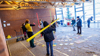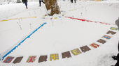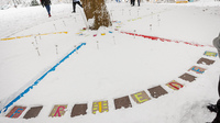 In der dick verschneiten Winterlandschaft kamen unsere Werke als bunte Farbsprengsel wunderbar zur Geltung und begannen zu leuchten. Die fröhlichen Bilder stehen im Einklang mit unserer Botschaft "Miteinander. Lasten schultern."