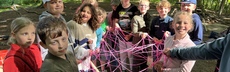 Die Kulturvermittlerin Barbara von Campe arbeitet ästhetisch, künstlerisch und imaginativ forschend mit den Kinder der Jahrgangstufe 4 zu den Themen im Wald. Parallel motiviert die Künstlerin Inga Momsen zu einem künstlerischen Blick auf den Raum Wald.